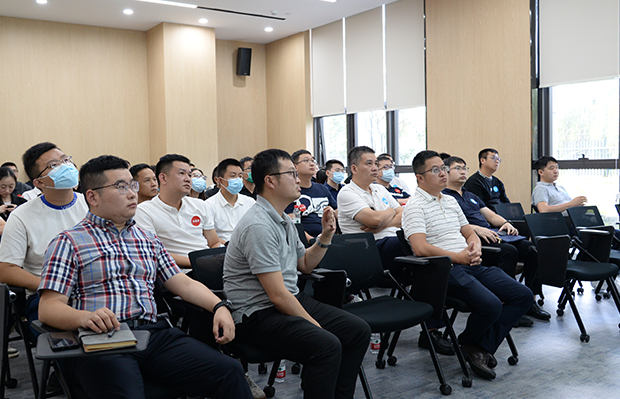 培训交流会特邀普锐特药业董事长兼总经理侯曙光致辞与培训。侯总首先对新员工的入职表示热烈欢迎,他从普锐特的发展历程,研发和生产情况,产品介绍以及企业战略四个维度展开了精彩讲解。同时,他在培训中提出:我们要踏踏实实用纯洁的情怀去做真实的药物。并鼓励新员工:“你所卖出去的每一支药,普锐特药业都是认认真真在生产,我们确保药品的质量和安全,希望普锐特通过持续的创新,助力中国医药的发展。”